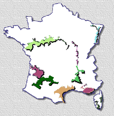 The climate for this area is Oceanic with cool and rainy winters and springs and warm summers, with sunny autumns. The soil of this region is of clay, limestone, and pebbles from the Pyrenees Mountains. This is also one of the oldest wine growing regions of France. Wines from the South-West have been confused with Bordeaux wines, which did cause many problems at the beginning of the century when the area of Bordeaux production was delimited. The diversity offer unfashionable wines with much personality. The main varietals of this region are Cabernet Sauvignon, Tannat, Merlot and Malbec for red wine. The primary white grapes are Semillon, Sauvignon, Ugni Blanc and Manseng.