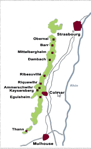 The first French wine region to discuss is the Alsace which has been producing wine since the conquest of the area by the Romans. The Alsace is located in the northeast section of France, between the Rhine and Vosges Rivers. Specifically it is bordered on the West by the Vosges and the East by the Rhine which is the border between France and Germany. This region has had a very chaotic history as it has shifted between France and Germany. The region is at the center of Europe and the main city of Alsace, Strasbourg, is host to the European parliament.