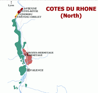 The Cotes du Rhone is probably the most diverse of the French wine regions. The Rhone valley is a long narrow area which stretches on both banks of the Rhone River. The region begins south of Lyon and finishes 125 miles further downstream, just south of Avignon. In the north section of the region the winters are cold and the summers warm while in the southern portion the weather is Mediterranean with mild winters and hot summers.
