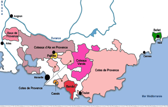 Provence wines are produced on the border of the Mediterranean, from La Ciotat to Saint Raphael, and from Sanary toward Carnoules and around the Var Valley toward Nice. The weather of this region is cool in the winter and hot in the summer. Winters can be cold the further away from the sea the area is located. The soil of the region is siliceous or limestone or sand. Vines existed in Provence when the Greeks arrived in 600 BC. The Greeks, followed by the Romans introduced growing and pruning techniques.