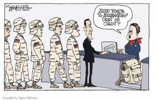 Fast deteriorating security situation in Afghanistan coupled with global recession which gravely impacted US economy propelled Obama to consider winding up the expensive war as early as possible and finding a political solution to Afghan problem. However, the military and civilian hawks prevailed upon him and forced him to sanction troop surge. Taking into account gentle protests of the anti-war doves as well as public pressure who also wanted the soldiers to return home, Obama slashed the demand to 30,000 and also announced pull out of troops starting July 2011 and kept the completion date vague.