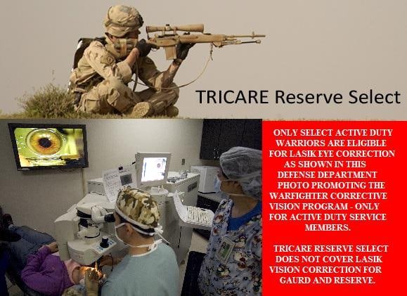 The first place I looked was TRICARE Reserve Select and besides saying that Guard and Reserve members did not qualify for refractive surgery TRICARE gave no explanation as to why active duty troops qualify for such force readiness corrective vision treatment but Guard and Reserve members did not.