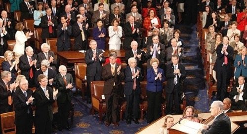 Key Members such as Eric Cantor (R-VA), Steny Hoyer (D-MD), Senator Charles Schumer (D-NY) and Harry Reid (D-NV) were designated as floor leaders and were seated in strategic locations in the Chamber.