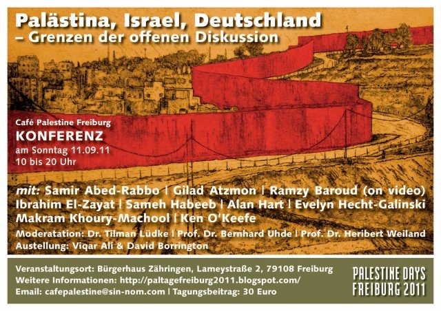 The conference ‘Palestine, Israel and Germany – Boundaries of Open Discussion’ (11th September, Freiburg Germany ) will address a number of critical issues including media suppression of the truth about Palestine/Israel; fabrication of history and the Palestinian narrative; the mainstream media´s complicity in Islamophobia and racial hatred; and the deliberate confusion between anti-Semitism, anti-Zionism and the criticism of Israel. One would expect that a gathering of this nature would challenge Israeli and Zionist propagandists to react negatively.