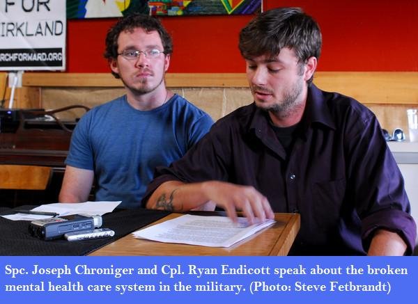 The March Forward!-organized speak out was held Aug. 12 at Coffee Strong, a veteran-run, anti-war coffeehouse just outside Ft. Lewis. It was the first event of its kind–active-duty troops, veterans and military families banding together to exert direct pressure on the military brass–since the current U.S. war drive began in 2001; and at a crucial time, with the Army revealing on Aug. 13 that July yielded the most suicides ever in a single month.
