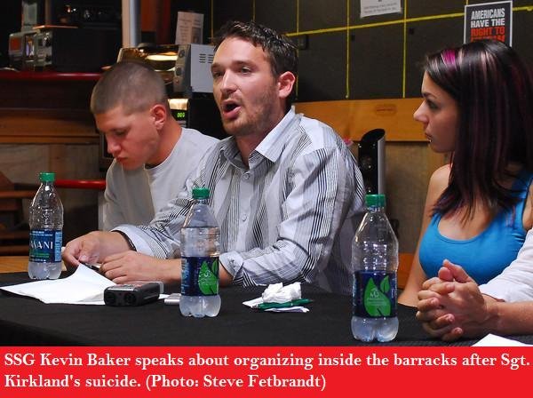 Another of Sgt. Kirkland’s fellow soldiers, Staff Sergeant Kevin Baker, said, “The fact that we are being sent over and over to wars we have no reason to fight, then treated so carelessly when we get home, shows that enlisted soldiers have the right to organize internally, within the military, in our interests.”