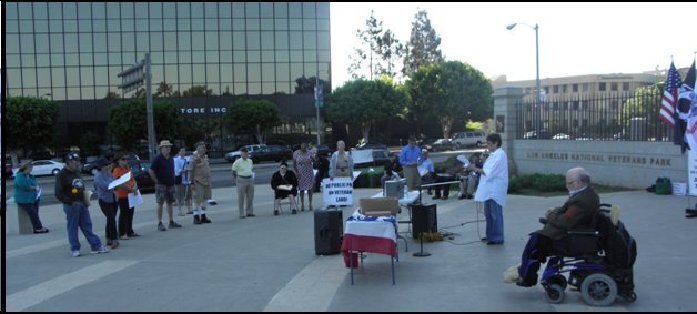 Dorothy Reik of the Progressive Democrats of Santa Monica Mountains reads the Resolution of the Los Angeles County Democratic Party that reinforces our own Declaration of Ownership and the Notice to Vacate. This LACDP Resolution (attached) is a powerful message to the elected officials of their Party to take immediate action to maintain this sacred land as it was legally deeded in 1888 as a permanent Home for disabled Veterans.