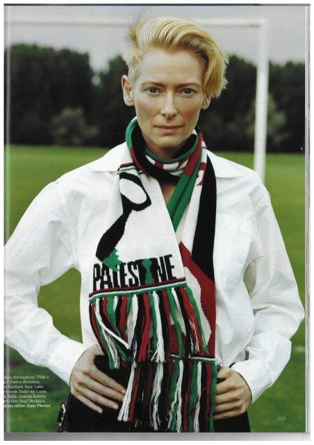 Vogue Magazine, November 2011 issue features actress Tilda Swinton on it’s cover — as she drapes a Palestinian scarf. This is an amazing and powerful statement and speaks volumes…